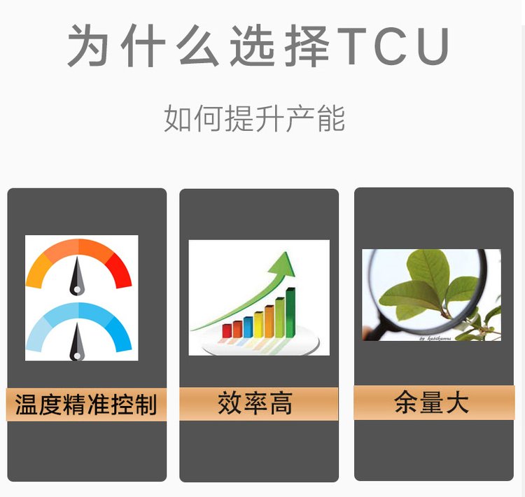 TCU溫度控制單元是不同于制冷加熱控溫系統(tǒng)的,控制控溫的過程就是控制反應(yīng)釜物料溫度的過程,利用現(xiàn)有的熱能通過精準(zhǔn)控制流量、壓力、溫度為導(dǎo)熱介質(zhì)進行換熱。主要是由升溫模塊、恒溫模塊和降溫模塊組成,分別滿足于醫(yī)藥行業(yè)藥品加工生產(chǎn)中反應(yīng)釜內(nèi)溫度調(diào)節(jié)的要求,以此準(zhǔn)確控制反應(yīng)釜內(nèi)藥品溫度隨反應(yīng)時間而變化的要求。但是TCU溫控系統(tǒng)不止用于醫(yī)藥行業(yè)藥品加工,還可用于反應(yīng)釜、攪拌釜、化工、材料試驗等行業(yè),由于其采用導(dǎo)熱油為載熱體,所以具有更為寬泛的溫度控制范圍,祝松機械可根據(jù)客戶工藝來選擇合適的加熱器。